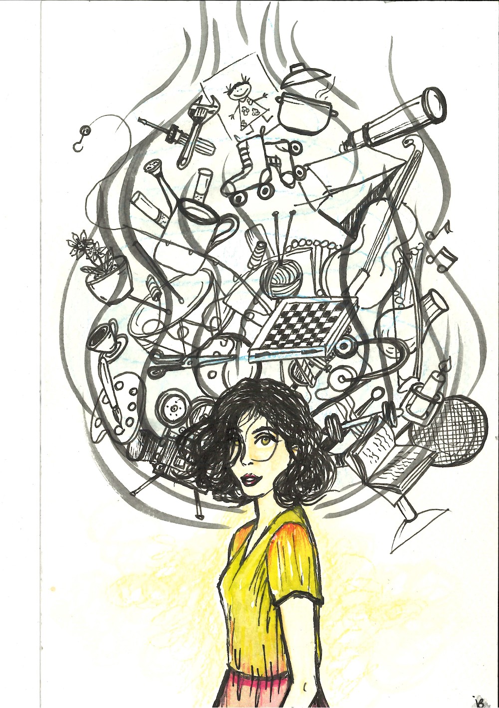 Done with watercolor pencils, watercolors, ink pen on A5 water colour paper and A5 bulky natural color paper.