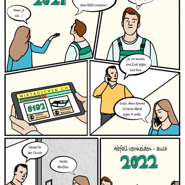 A short comic series for New Year’s greeting cards, done for Geo-Balance, Brigitte Fischer, Switzerland, a small environmental consulting business. The cards were sent to her cus